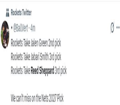 火蜜晒出火箭队此前榜眼签选杰伦-格林、探花签选小贾巴里-史密斯、探花签选谢泼德,我们在2027年篮网那个选秀权不能再出错了。